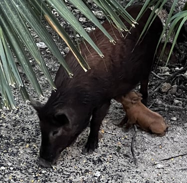 Feral hogs, also known as wild pigs, piney woods rooters, and wild boar, have become a significant ecological and economic concern in many regions. These animals are notorious for their ability to reproduce rapidly and cause extensive damage to crops, pasturelands, and native ecosystems. Wild hogs also carry many diseases that are transmissible to domestic livestock, wild animals, pets and even humans. Because of the pressing need to manage feral hog populations effectively, researchers are looking towards innovative approaches such as biogenetics. This article announces our latest funding round to allow us to launch our Steinhatchee, Florida Field Site for feral hog biogenetics projects, which aim to tackle the challenges posed by these highly intelligent, interesting but invasive species.